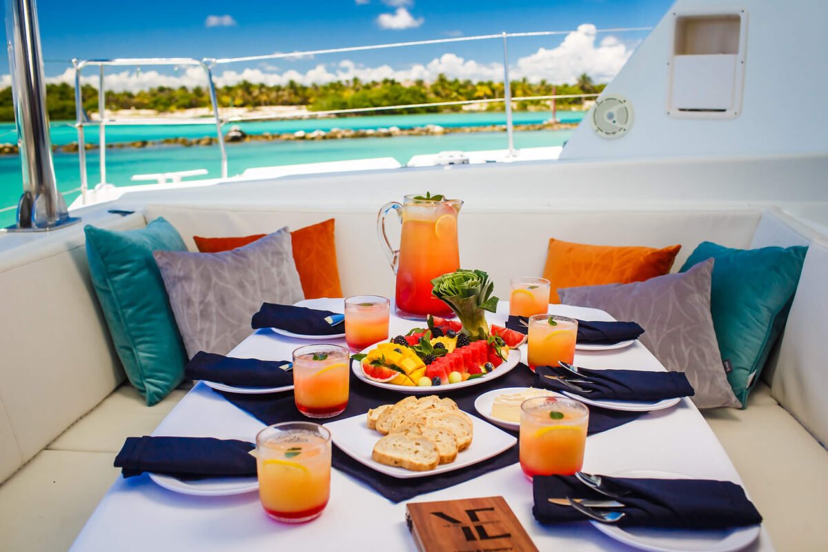 Freshly prepared meals and a premium open bar elevate your sailing day into a floating restaurant experience. This level of service rivals top Cancun SuperYachts and Mega Boats.