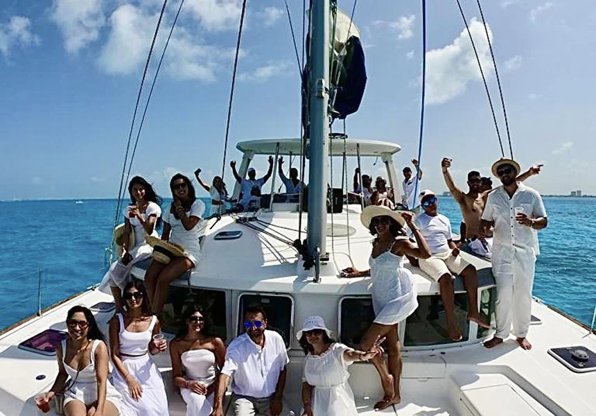 Enjoy a spacious 46FT private catamaran in Cancun designed for up to 35 guests. Perfect for birthdays, bachelor and bachelorette parties, family celebrations, and private group adventures to Isla Mujeres.