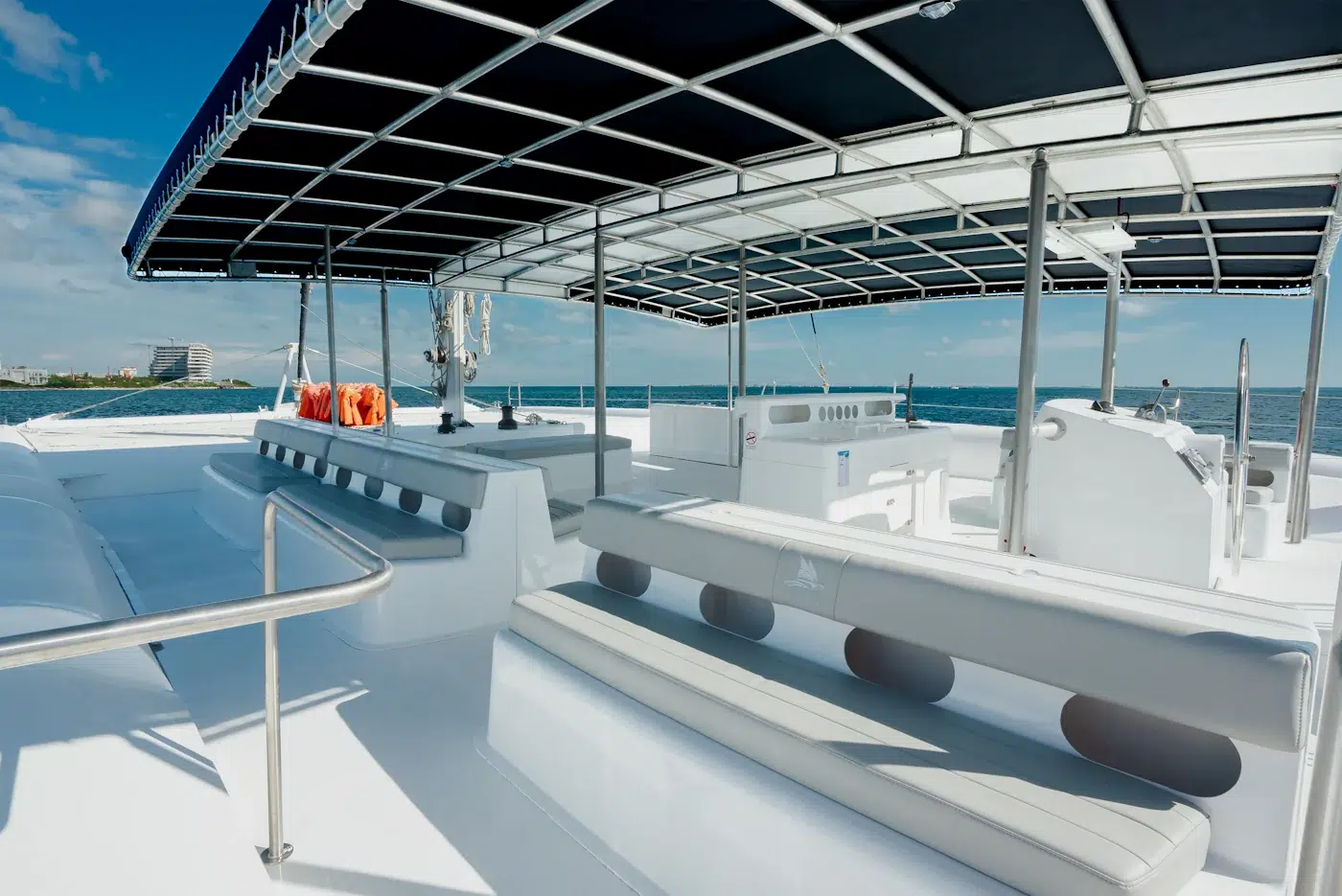 Step aboard a spacious 75FT private catamaran in Cancun designed for up to 100 guests. This large sail and motor vessel offers the ultimate setting for weddings, corporate events, milestone celebrations, and exclusive private gatherings.