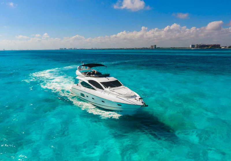 Step aboard the elegant 64ft Sunseeker Manhattan and enjoy a refined private yacht experience on the turquoise waters of Cancun. This yacht offers the perfect balance of luxury, comfort, and performance.