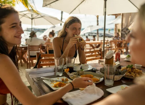 Once on the island, a buffet meal is included. In addition, guests have time to relax and enjoy the beach atmosphere.