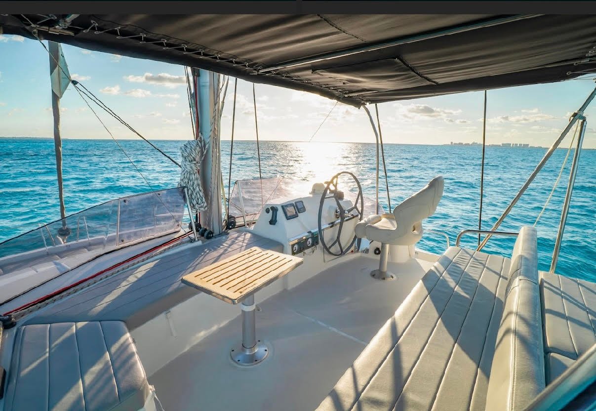 Experience the elegance of the 45FT Mauka luxury catamaran charter in Cancun designed for private groups of up to 30 guests. This spacious sailing catamaran combines comfort style and performance as you cruise across the turquoise Caribbean waters.