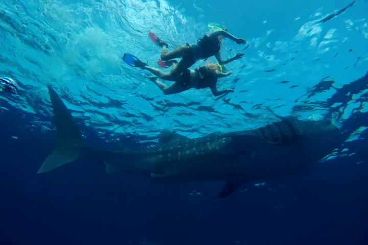 Swimming next to a whale shark is a surreal experience. These gentle giants move slowly and gracefully, allowing you to observe their massive size and beautiful patterns up close.